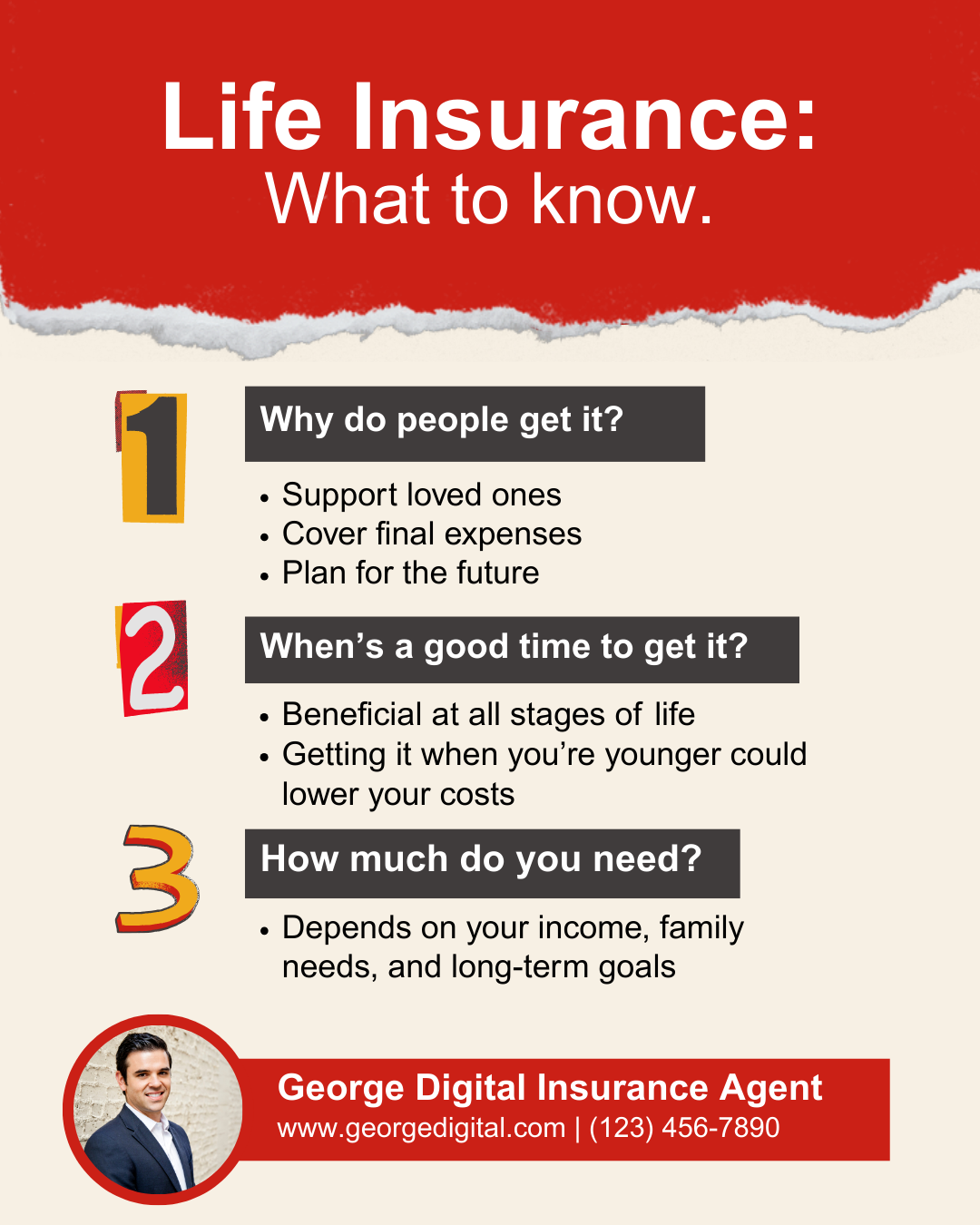 Instagram Caption: Life insurance doesn’t have to feel overwhelming. If you’ve ever wondered why people get it, when to consider it, or how much you might need, this post breaks it down into simple answers. And if you’re unsure where to start, I’m here to help you explore what fits your life. #lifeinsuranceday #lifeinsurance #GeorgeDigitalInsuranceAgent